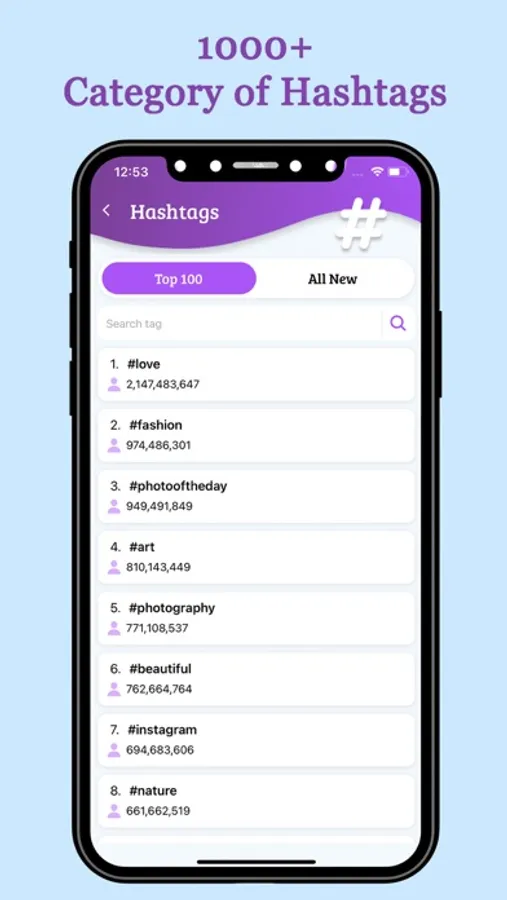 1000+ Hashtags Category and 100+ Top Hashtags Category with Analytics data of uses. There are selected Caption Category for Instagram Post. And Stylish Text to create you Profile Awesome for more Like and followers.