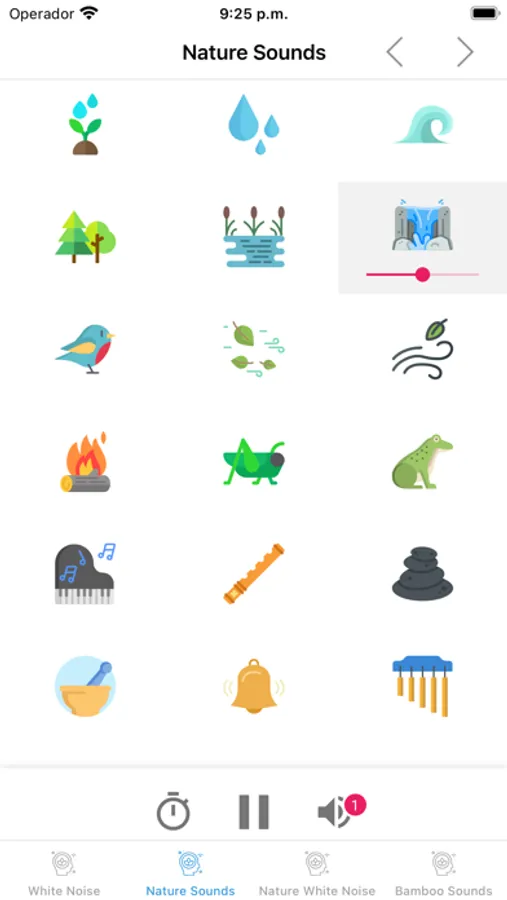 - Combined natural sounds: Shows dozens of natural sounds that can be combined with each other to generate the sound you want and with which you feel comfortable.