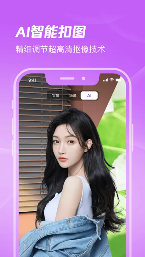 You can shoot videos without the need for a green screen, or use a green screen for virtual background effects that seamlessly blend in. Additionally, AI-powered image cutout feature enables professional-grade hair-level precision.