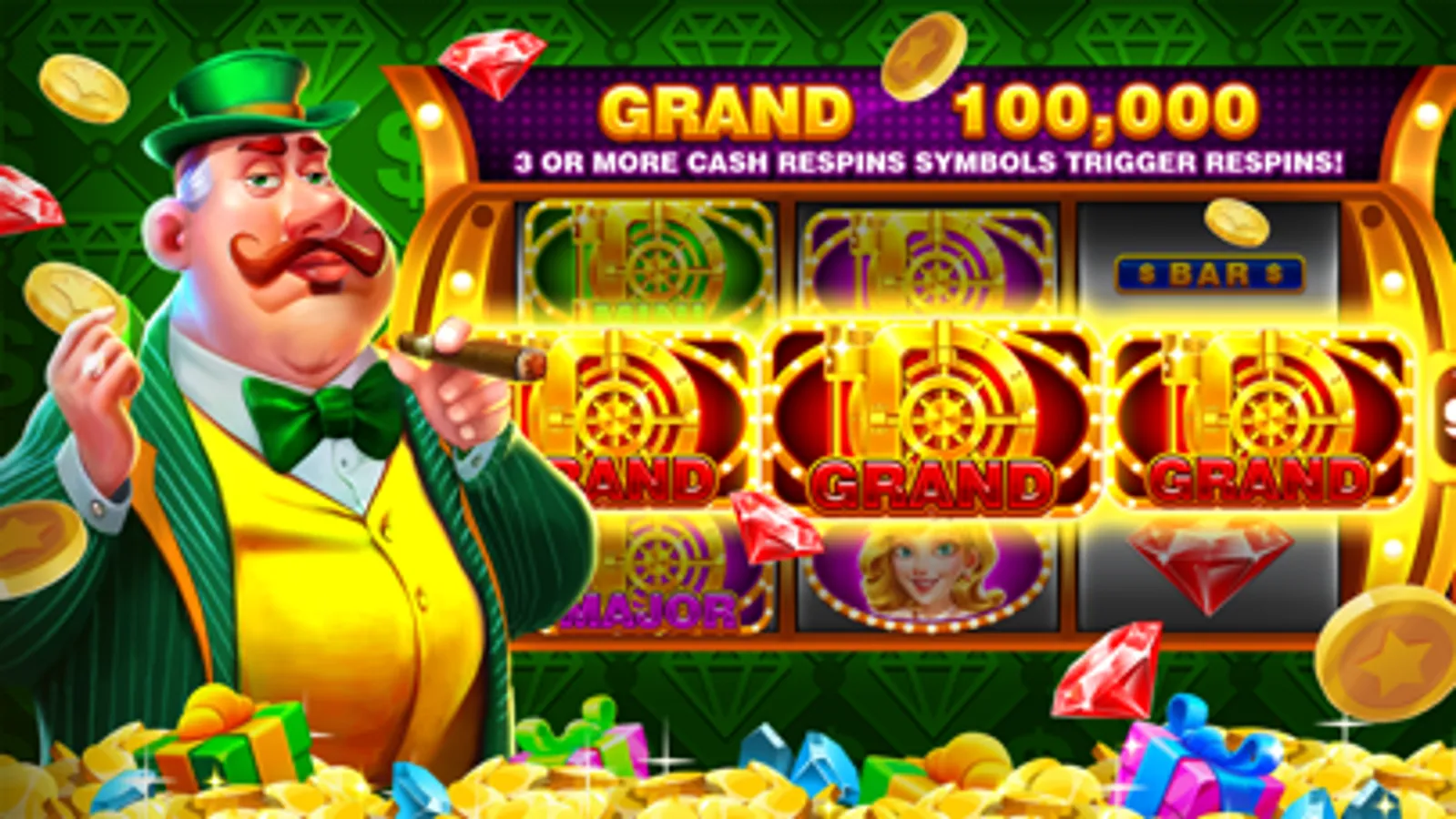 You can find free coins everywhere in Cash Hunter! Big Express every 15 minutes & Mega Express every 1 hour! Daily Bonus & Wheel Bonus, huge coins for Mission Challenge every day and Lucky Treasure every week! More coins waiting for you to find! Spin and Jackpot never stop!
