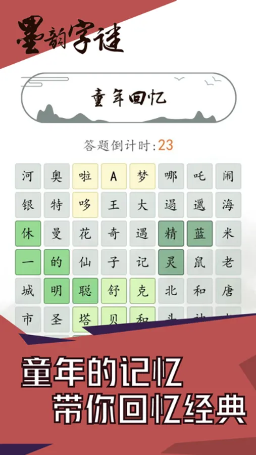 每一关都是一个充满汉字魔力的谜题,巧妙运用这些汉字,挑战一关关由汉字组成的谜题,在解密过程中体会汉字蕴含着的深厚文化底蕴,感受汉字的博大精深