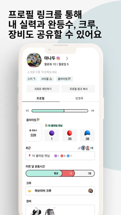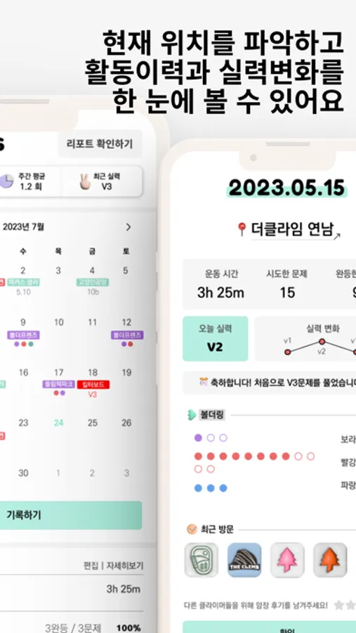나의 클라이밍 활동을 기록하고 내 실력을 추적해보세요