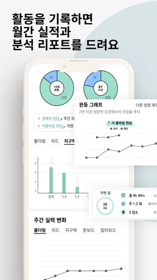 - 나의 완등 횟수와 추이를 알 수 있어요.