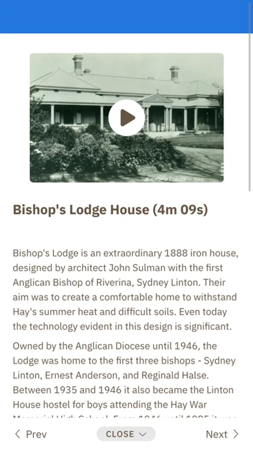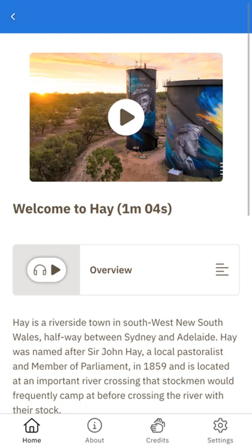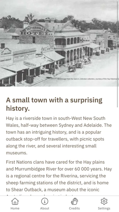 Hay is a riverside town in south-West New South Wales. First Nations clans have cared for the Hay plains and Murrumbidgee River for over 60 000 years. The town has an intriguing history with several interesting small museums and is home to Shear Outback, a museum about the iconic Australian sheep shearing industry. The Historic Hay tour introduces four of these museums. Hay residents share personal stories about the town, sheep shearers talk about their work, and history lovers talk about the hardships and joys of life in Hay over the decades. You will be informed, surprised and eager to discover more with the new information that awaits you - so strap in and get started!