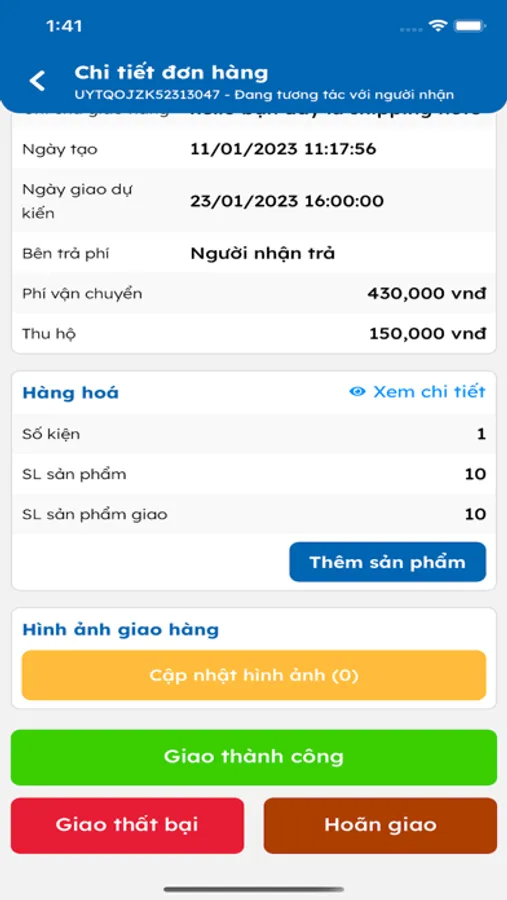 App quản lý nghiệp vụ giao nhận hàng chặng cuối bao gồm nhận hàng hóa từ người gửi và giao hàng hóa đến người nhận, cùng với các quy trinh liên quan như hoàn hàng, thu tiền COD, v.v.