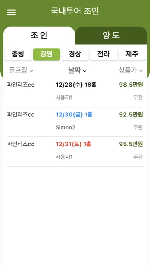 1. 국내 골프 예약, 조인, 부킹, 양도