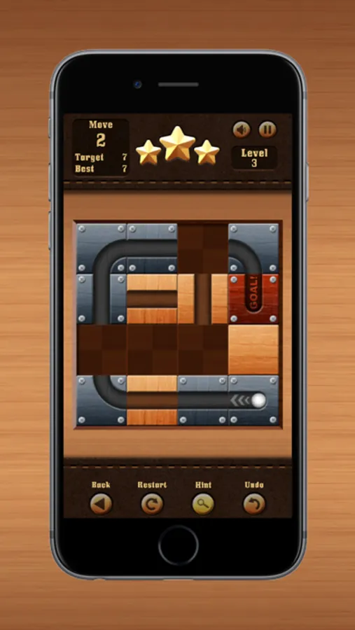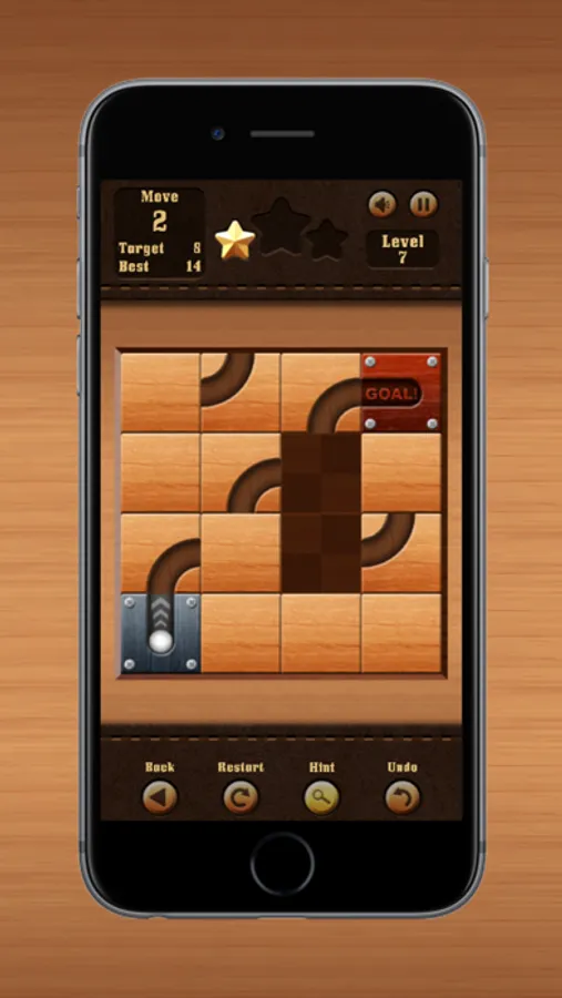 Slide the wooden tiles to make a path for the ball to hit the goal. Iron tiles cannot be moved. Aim to win with as few moves as possible. Use hints when you get stuck.