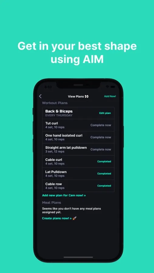 AIM is the ultimate fitness and wellness app for coaches and students. With AIM, coaches can easily create and assign personalized workout and meal plans for their students, and track their progress every step of the way. Students can access their assigned plans and track their progress, as well as create their own custom plans if desired. Whether you're a coach looking to help your students reach their goals or a student looking to get in the best shape of your life, AIM has everything you need to succeed. Download AIM today and take control of your fitness journey!