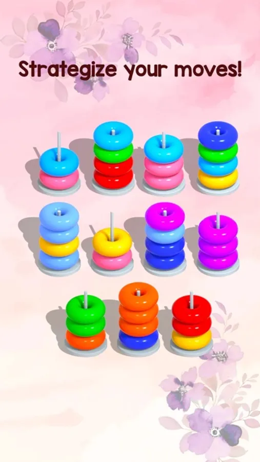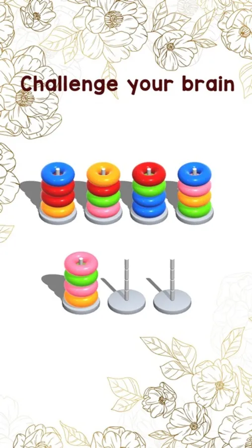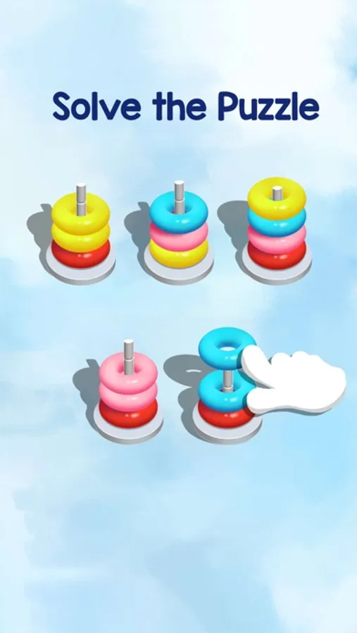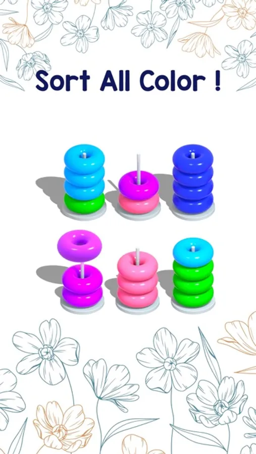All you have to do in this stacking game is to try to sort the color rings and put them in the stack until all the same colored rings are in the same stack.