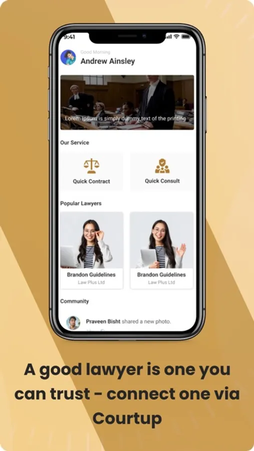 solutions to businesses and individuals at your fingertips. We understand that navigating matters of the law can get confusing and stressful, which is why we created a mobile application to help ease the process. Whether you need help drafting a will, filing for divorce, resolving business disputes, or simply need a question answered, CourtUp lets you receive the assistance you need, effortlessly.