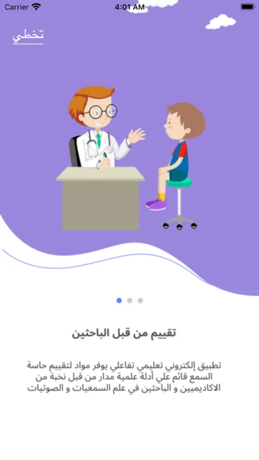 تطبيق يهدف للتقييم السمعي والبصري للاطفال عن طريق رؤية صور بها اختلافات وسماع اصوات تدل ع اشياء يرونها ويحددونها