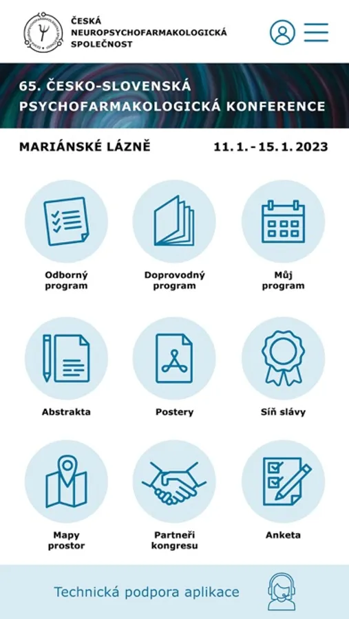 Aplikace vytvořená Českou neuropsychofarmakologickou společností ve spolupráci s Health communication, s.r.o. pro 65. česko-slovenskou psychofarmakologickou konferenci,