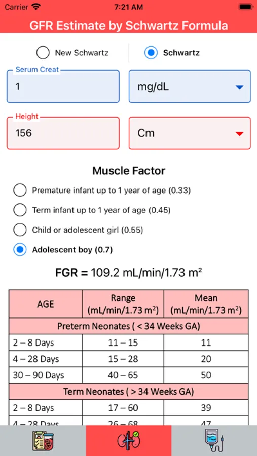» It computes the glomerular filtration rate in pediatrics using both the Classical Schwartz and Modified Schwartz methods and generates a reference table by age.
