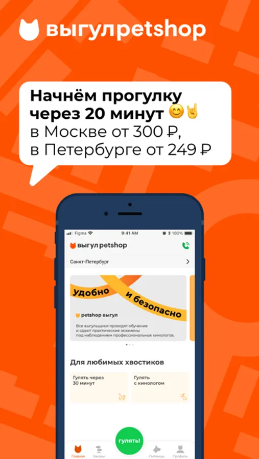Выгул Petshop - готовы гулять через 20 минут после заказа.