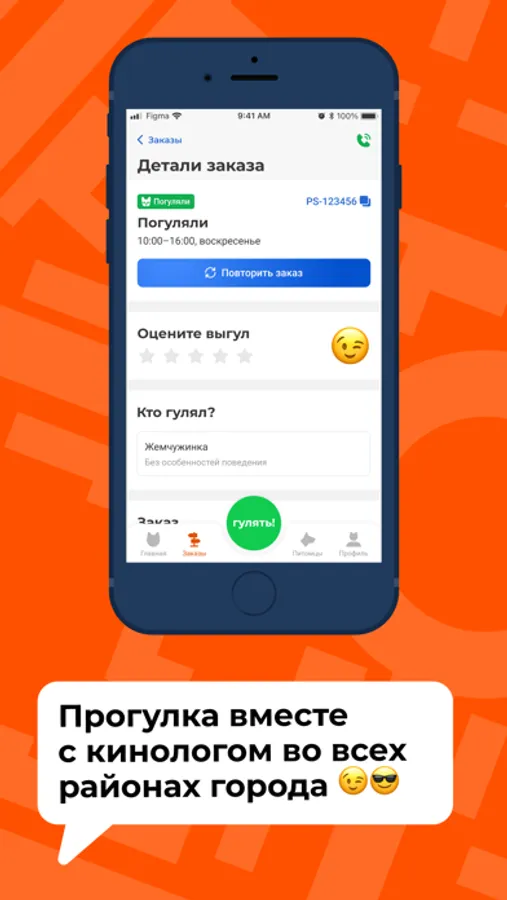Оформить заказ очень просто. Достаточно установить приложение, пройти простую регистрацию, выбрать время прогулки.