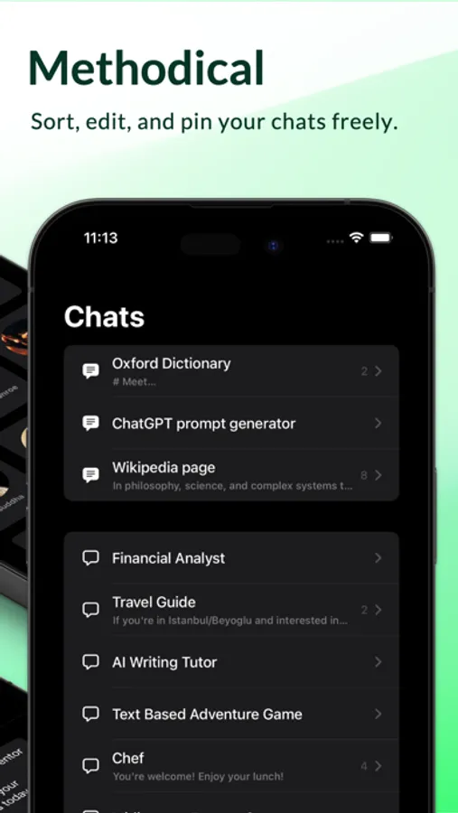 - Well-organized: Chat history can be freely edited, sorted, and pinned.