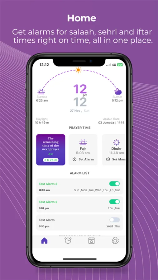 Introducing the Prayer Alarm app - your personal assistant for keeping track of daily Salat times. With our app, you can set customized alarms for each salat, ensuring you never miss a Salat again. The app also includes a compass to accurately find the direction of the Kaaba, as well as the ability to customize the call to prayer. During the sacred month of Ramadan, this app can also give you accurate Sehri and Iftar times. Apart from that, get precise timings for sunrise & sunset, and learn about the forbidden times to offer Salat. Download the Prayer Alarm app now and stay on track with your daily prayers.