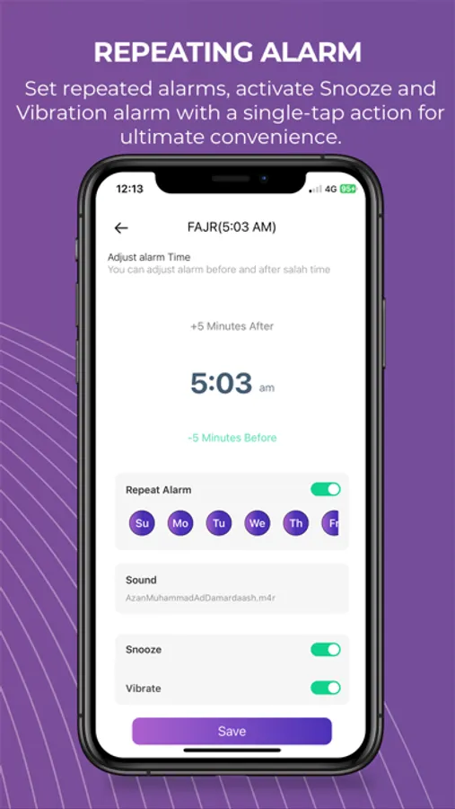 Customized alarm for Salat: Most apps are built-in with default Salat times and alarms, but our Prayer Alarm is customizable. You can set your preferred time for alarm based on Salat times accordingly. Moreover, you can use it as your default alarm app to wake you up in the morning and schedule routines based on Salat times.