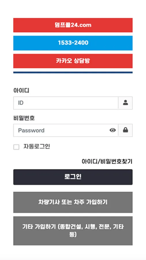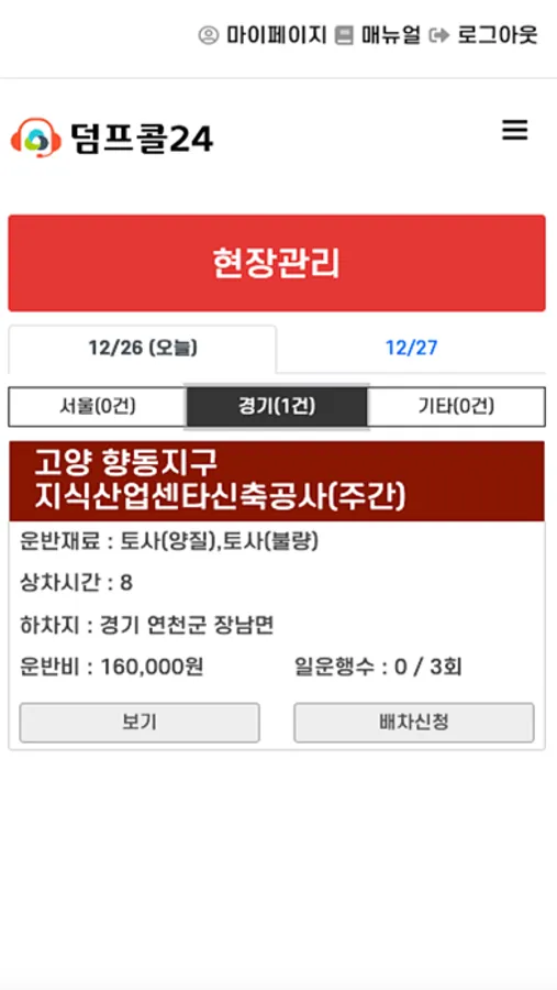 덤프콜24는 토목,건설현장의 토사물을 운반하는 덤프트럭의 운행관리와 정산등을 시스템화하여