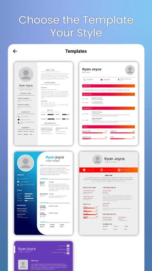 Diverse Design Templates: Explore a vast collection of professionally crafted templates, each tailored to different industries and job roles. Find the perfect match for your career aspirations.