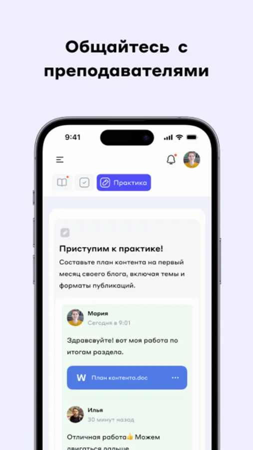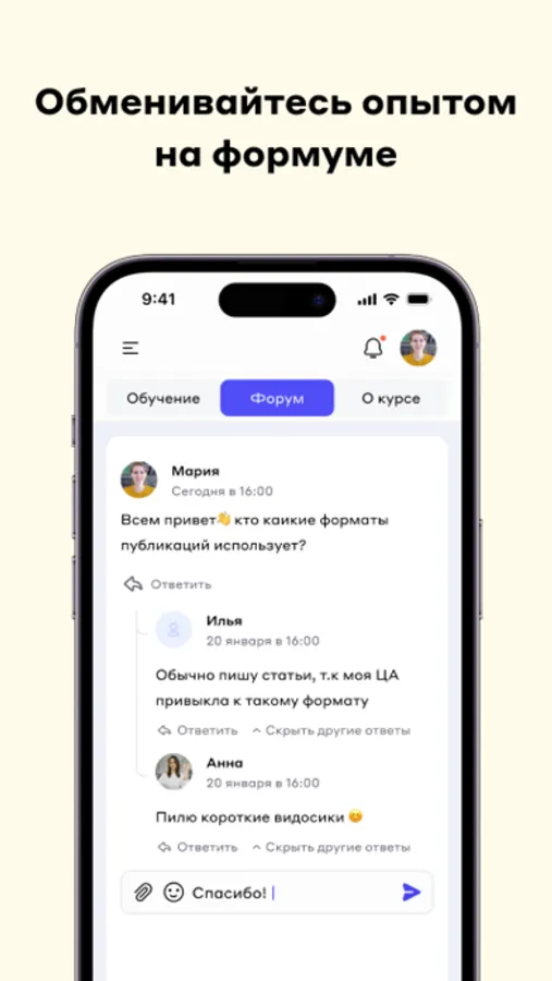 Делиться впечатлениями и общаться с другими учениками на форуме и в тематических чатах;