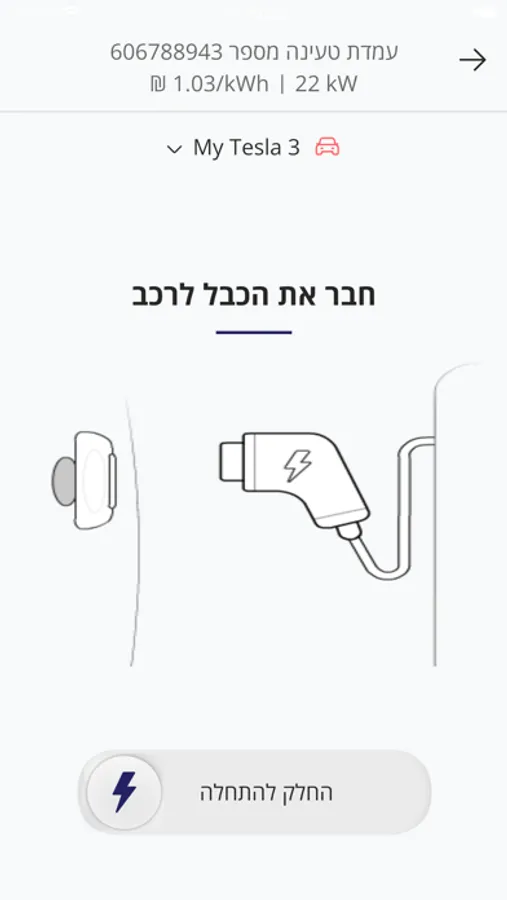 לבצע תהליך של טעינת הרכב הכולל הזדהות, טעינה ותשלום.
