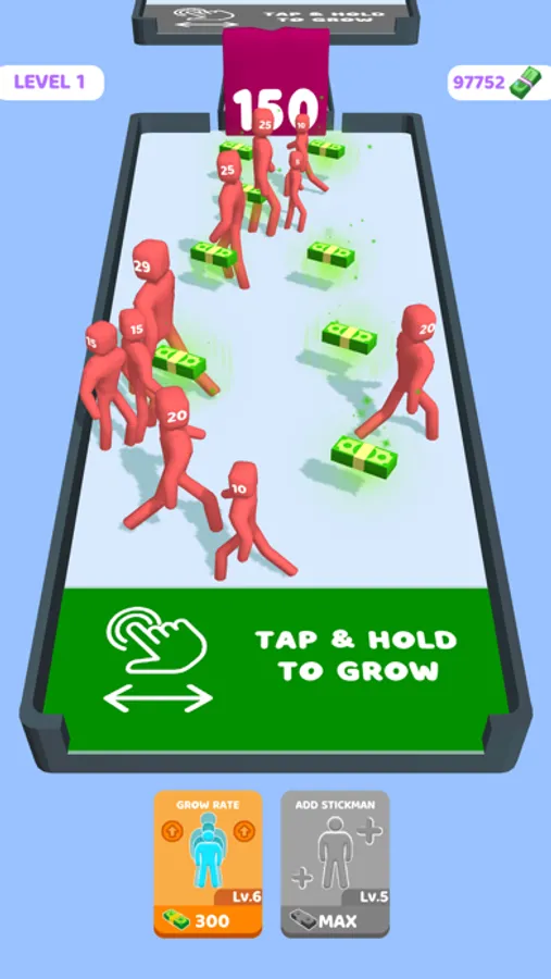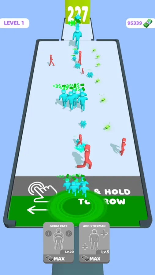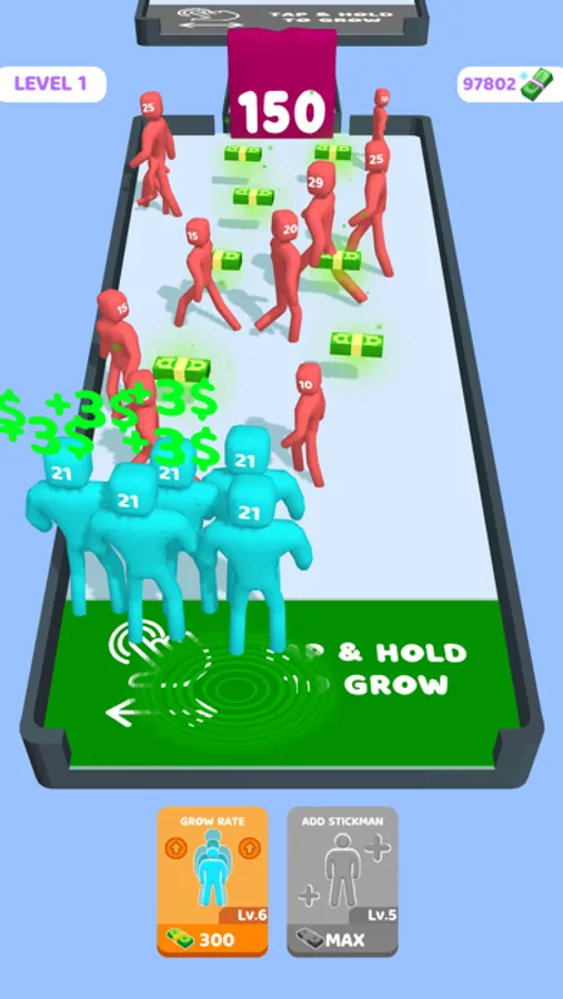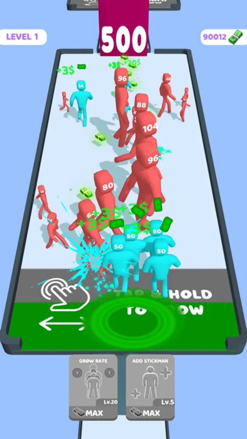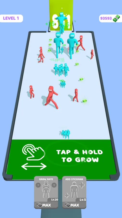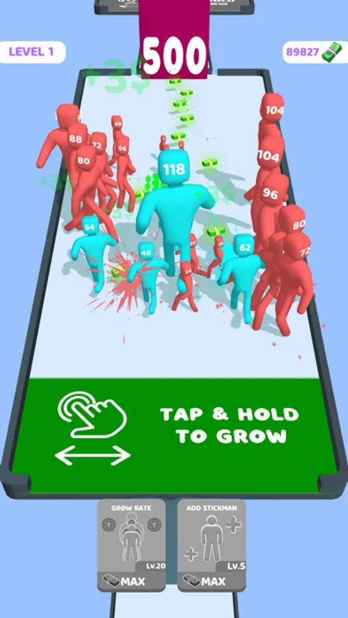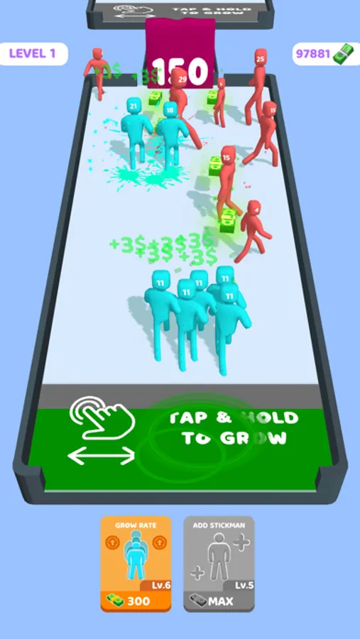 Tap and hold to inflate soldiers! Release your finger to free them! Enemys are waiting! If your level is higher than them, victory shall be yours! If your men can reach the wall, they can push it to victory!