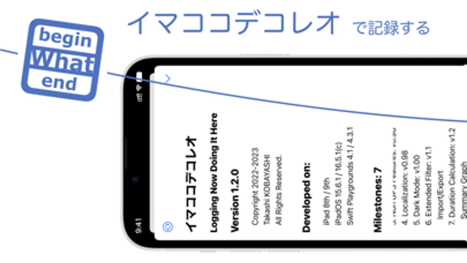 ◆ボタンをタップすると、ボタンに予め割り当てた内容と、タップした日時、経過時間(終了の場合)を記録します。
