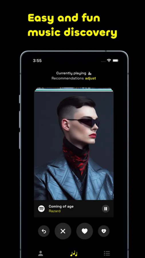 Level up your music discovery game and create the most amazing playlists with ease. Simply right swipe on songs you want to keep, and they will be added to a Spotify playlist of your choice. Simple as that.