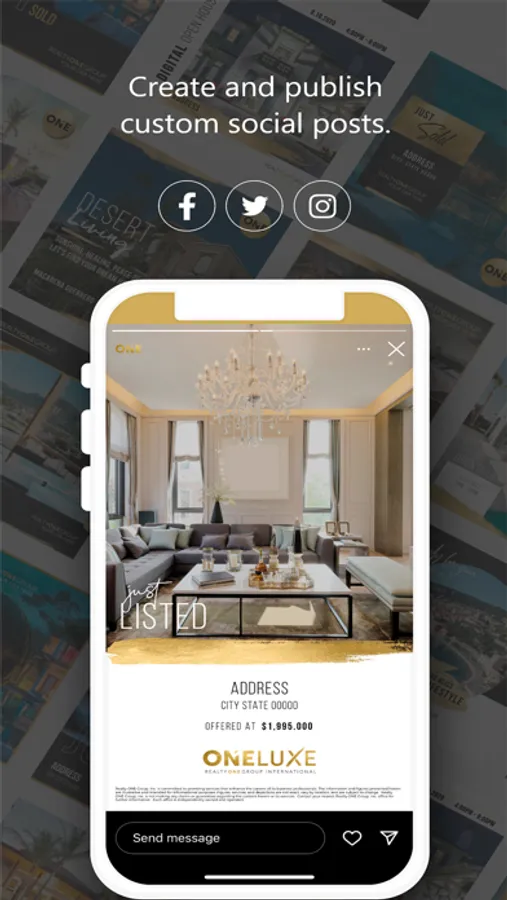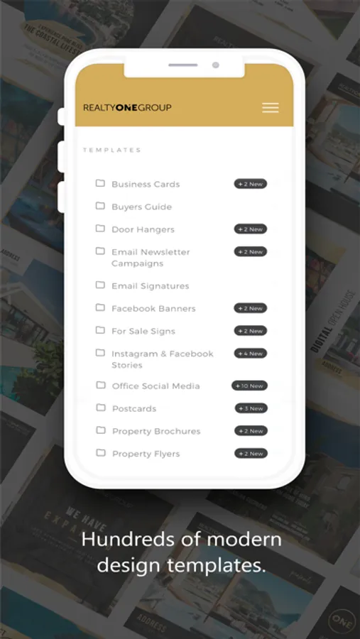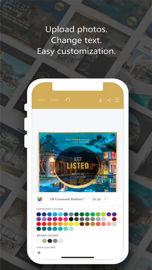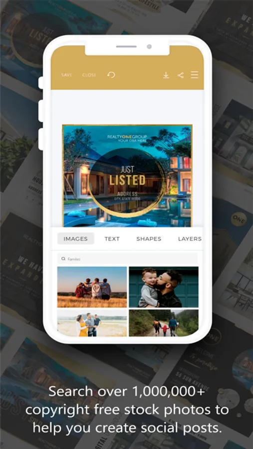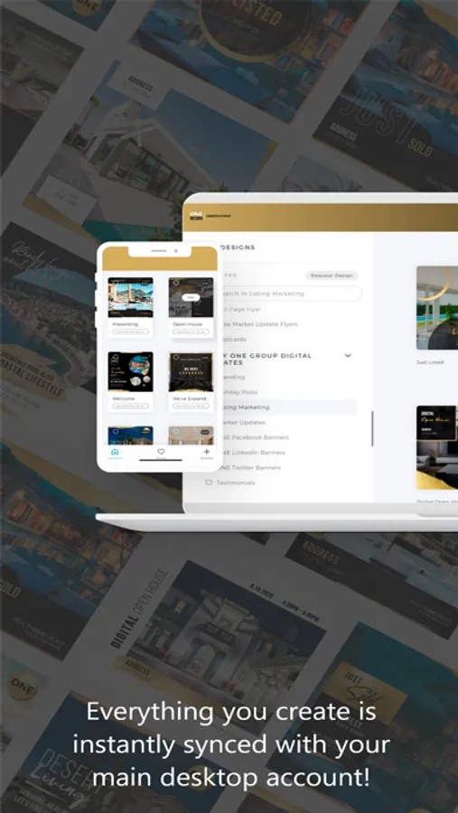 Create beautiful marketing assets from anywhere with the Realty ONE Group Creative Studio mobile app. Access your previously saved designs and browse hundreds of brand exclusive templates. The app’s mobile friendly design tool makes personalized customization quick, with saved personal information populating directly into creative pieces. Direct links to sharing on third-party apps like Twitter, Instagram and LinkedIn make it an efficient marketing tool for every real estate professional.