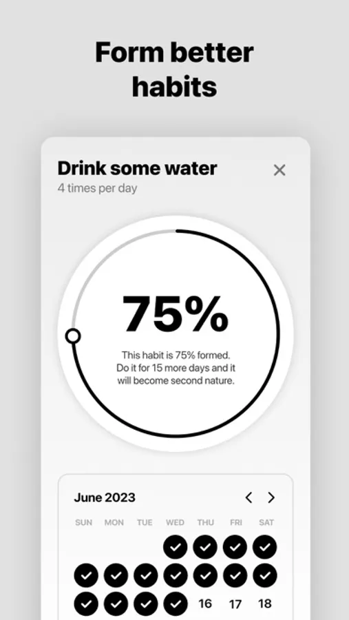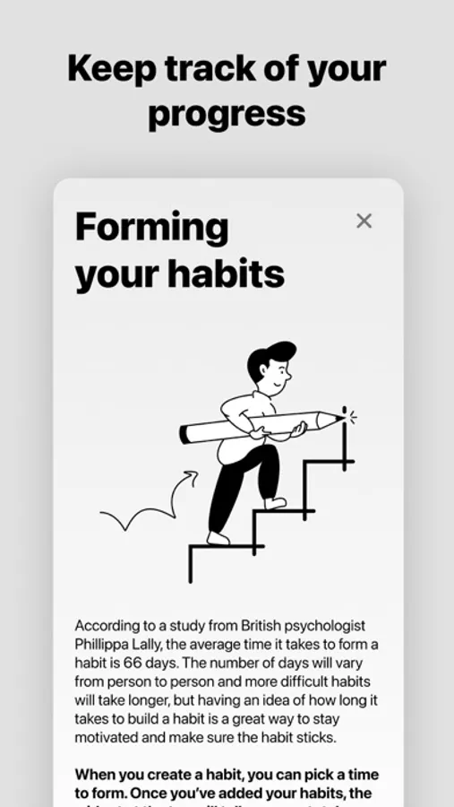 Knowing when your habit will be formed can be a powerful motivator and this app makes it easy to set a target and track your progress.
