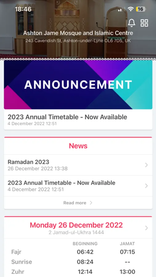 Ashton Jame Mosque and Islamic Centre launches its new application to improve the communication between the mosque and the community :