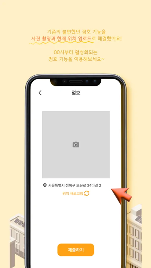 점호 : 불편하고 비효율적인 점호는 이제 그만! 자신의 위치와 사진을 통해 간편하게 점호에 참여하세요.