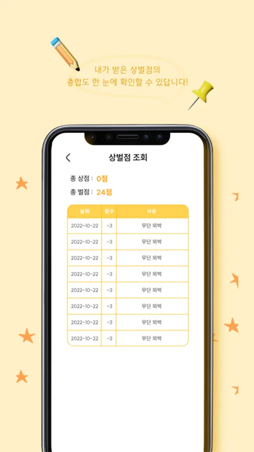 상벌점 : 푸시 알림을 통해 실시간으로 부여되는 상벌점을 확인하세요.