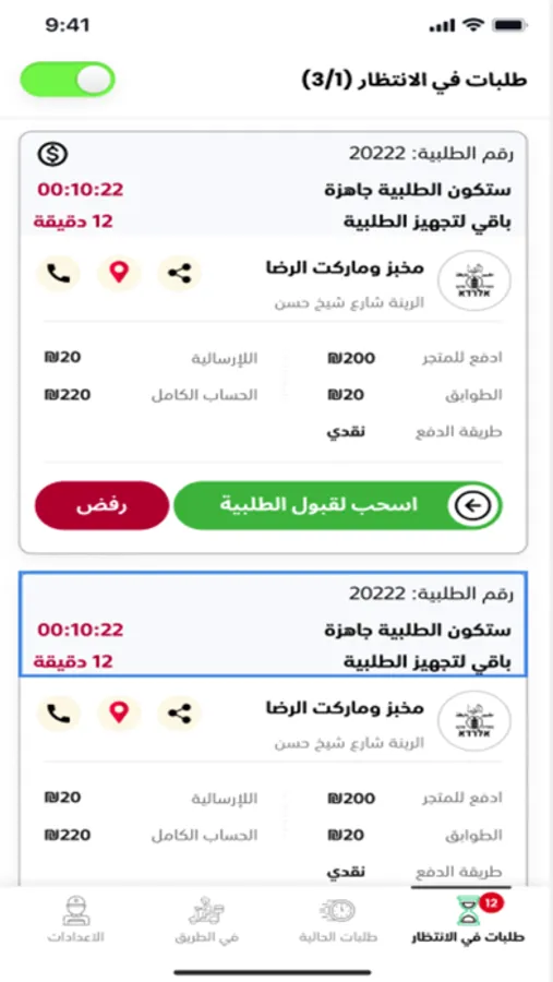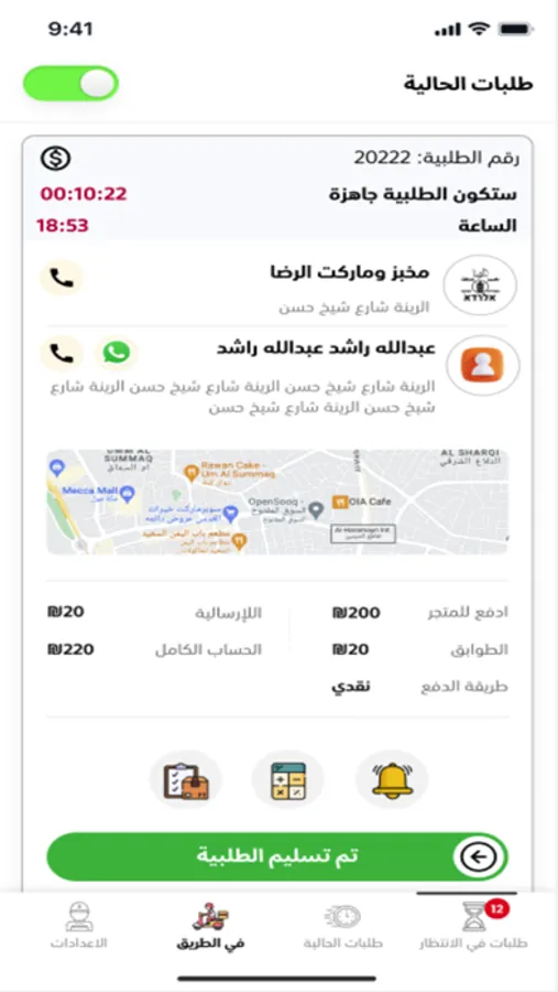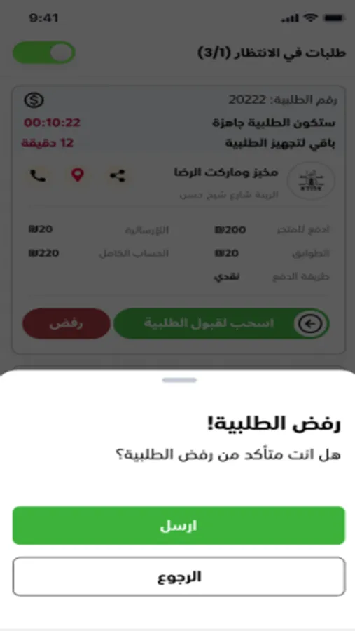 إعطاء السائقين جميع البيانات اللازمة لقبول / رفض وتتبع الطلب