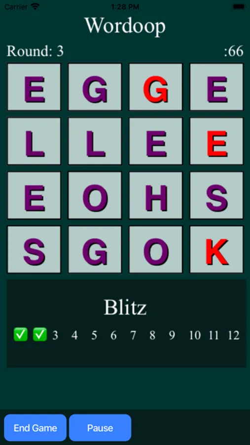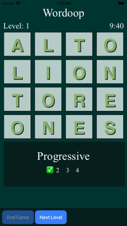 You'll need your word knowledge and logic to discover words from a grid of scrambled letters. Words are symmetric so that each word is duplicated across a column and row. There are two game types, Wordoop Progressive and Wordoop Blitz, both included in the free download.