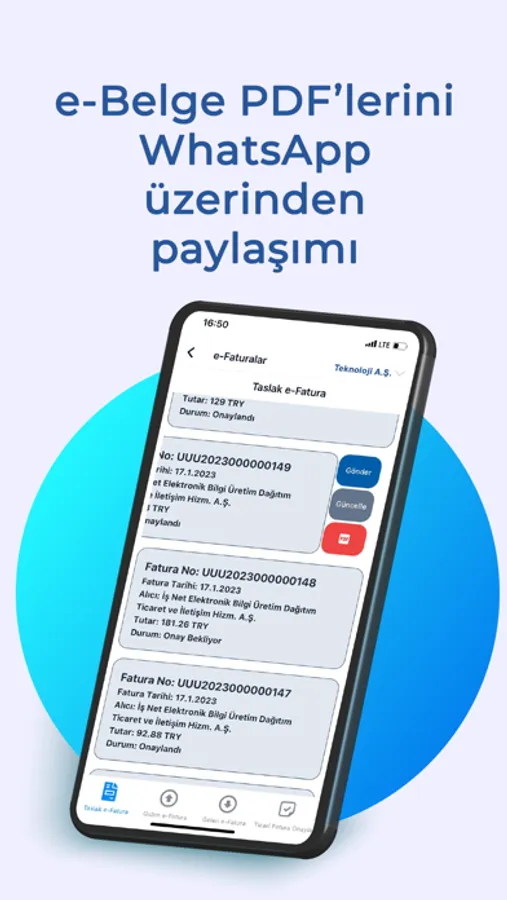*e-Belgelerinizin PDF'lerini görüntüleyip, WhatsApp üzerinden gönderimini yapabilirsiniz.