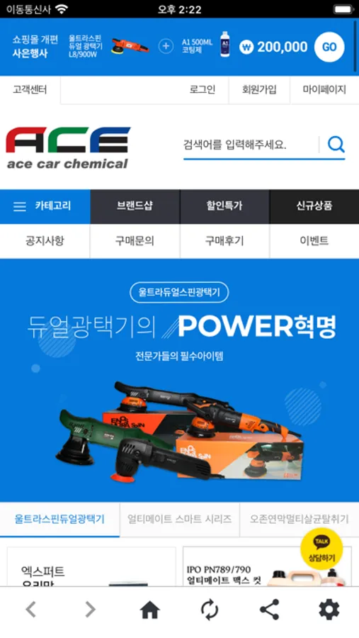 전문가용 B2B 세차/디테일링/광택용품을 20년 넘게 도/소매 유통중인 에이스상사 쇼핑몰입니다.