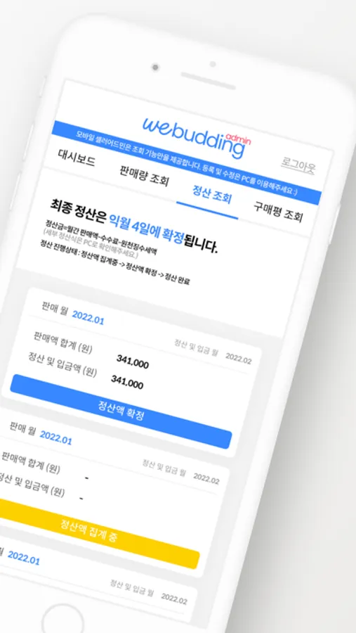 * 데스크탑으로 seller.webudding.com에 접속하시면 위버딩 셀러어드민의 전체 기능을 이용하실 수 있습니다!