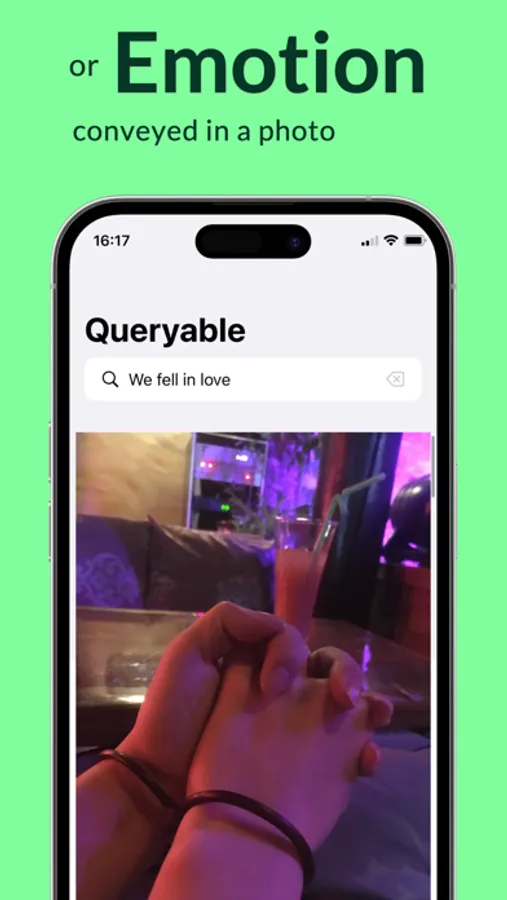 With Queryable, you can search for photos in your albums using text descriptions like "photos of our gathering," "kite in blue sky," "dog, girl, and flower," or even emotions depicted in the photo.