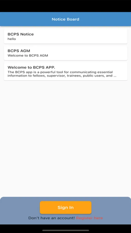 The BCPS push notification app is a solution designed for medical trainers, trainees, staff, and the general public who would like to stay in the know on and be notified of the most recent activities of the Bangladesh College of Physicians & Surgeons (BCPS). The major objective of the BCPS push notification app is to keep the general public informed of recent events, admission notices, exam results, pertinent news, and a variety of other BCPS-related events. The BCPS push notification app also allows users to create their own personal account in the system. The user will be able to assess oneself after registering in the system by taking a variety of quizzes to determine whether or not they are qualified for the health care system. The user who took the quiz will be the only individual to see the user's assessment score, which will be kept private. In addition, using this program will make it easier for the user to remember important occasions and arrive at them on time or take the necessary action.