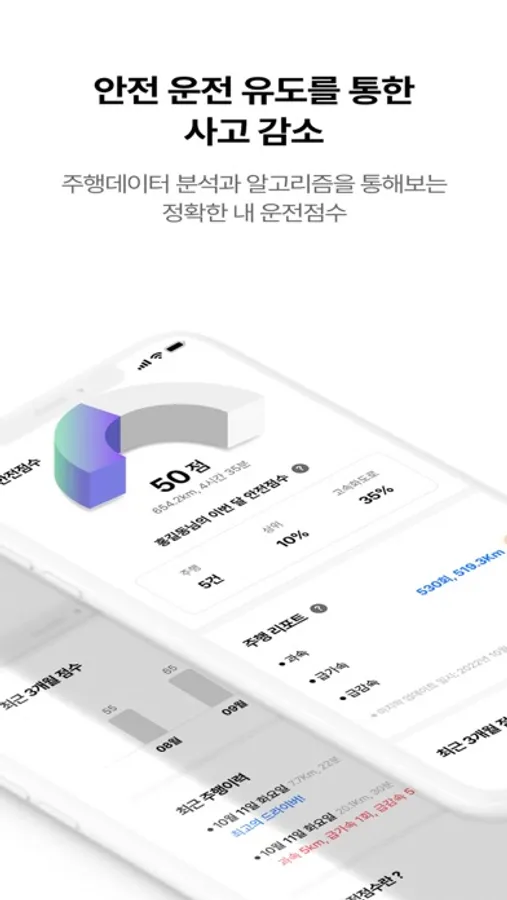 - 이용자의 주행데이터에 대한 분석 및 알고리즘 계산을 통해 운전습관을 점수화하여 제공하는 서비스입니다.