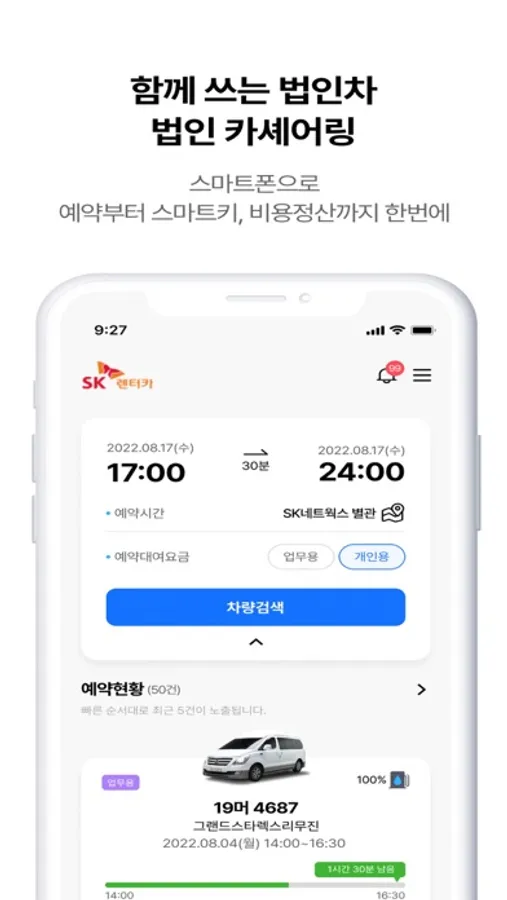 임직원이 편하게 차량을 예약, 사용할 수 있습니다.