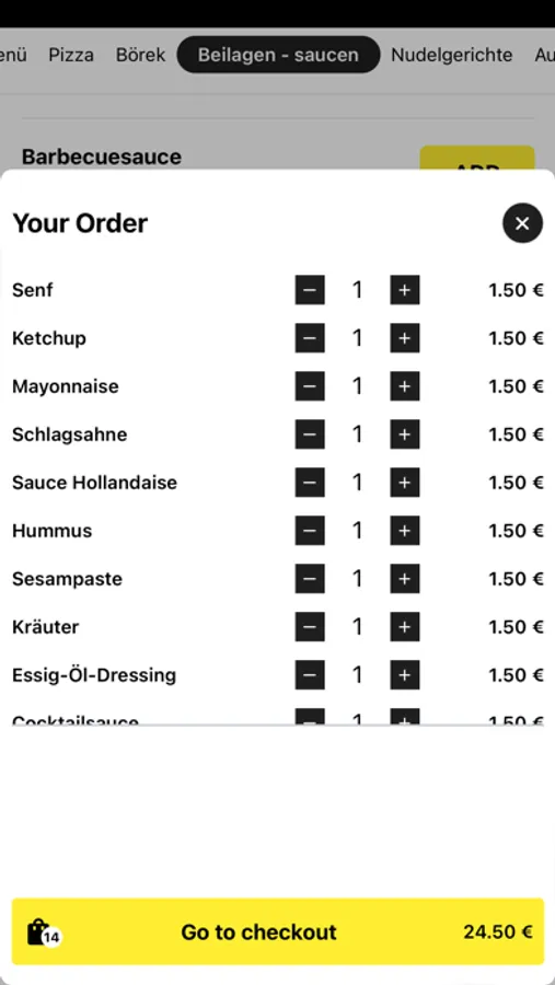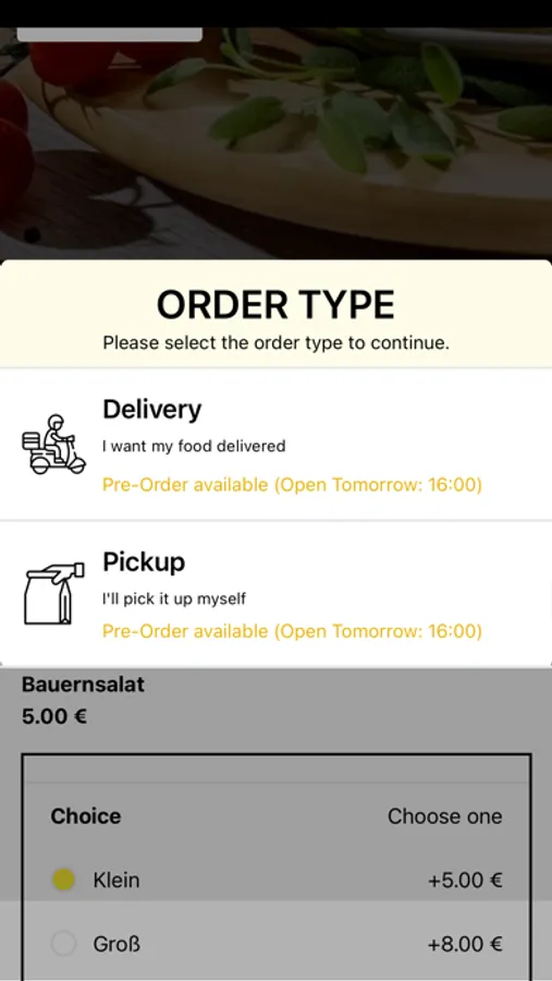 - Durchsuchen Sie die Speisekarte des Restaurants und sehen Sie sich alle anpassbaren Optionen im Voraus an