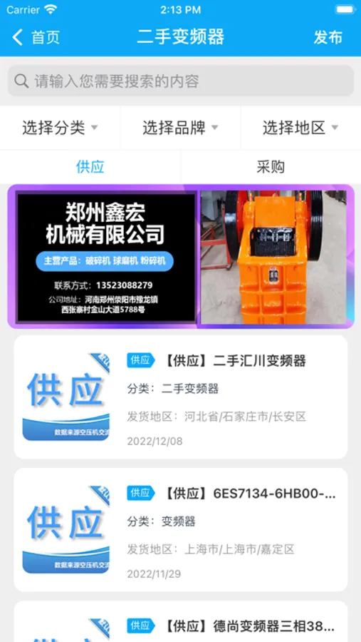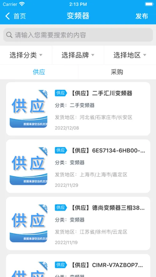 专业的变频器信息平台,提供全国主流变频器、配件的价格,供求信息,设备买卖,一应俱全!是一款专门针对变频器机械设备服务的手机APP。