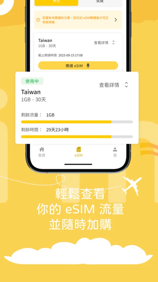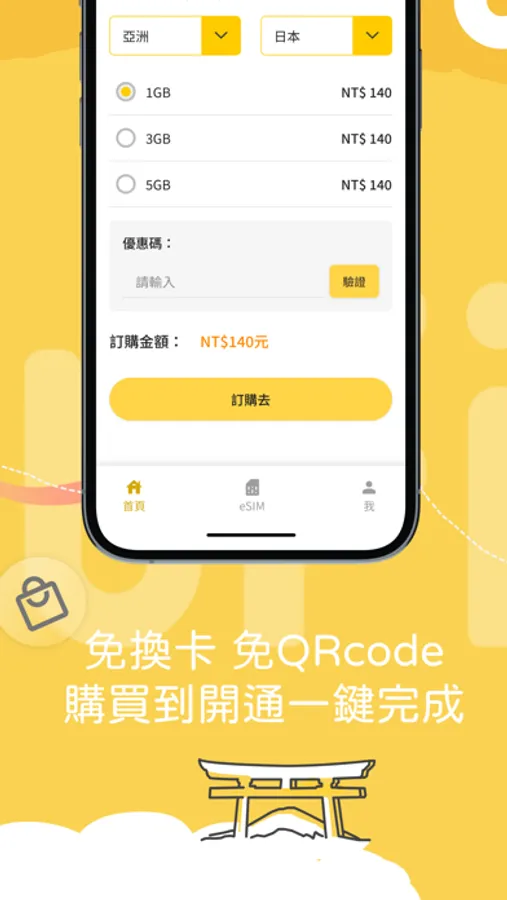 如果您的套餐不支援台灣以外的國家,我們將贈送100MB的台灣流量,讓您在台灣體驗或試用我們的eSIM