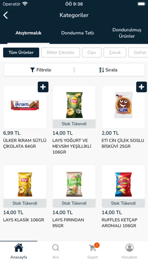 * Ürün kategorilerinde filtreleme yapabilirsiniz