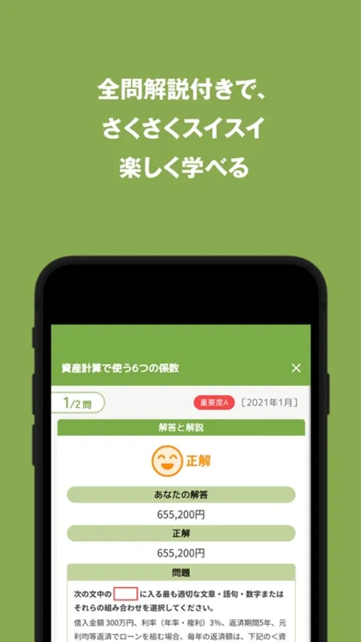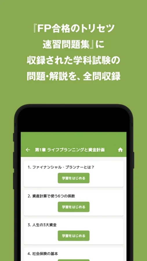 本アプリは、書籍『FP合格のトリセツ 速習問題集』から学科試験の問題・解説を、全問収録しています。サクサク解いて、効率的に合格を目指しましょう。