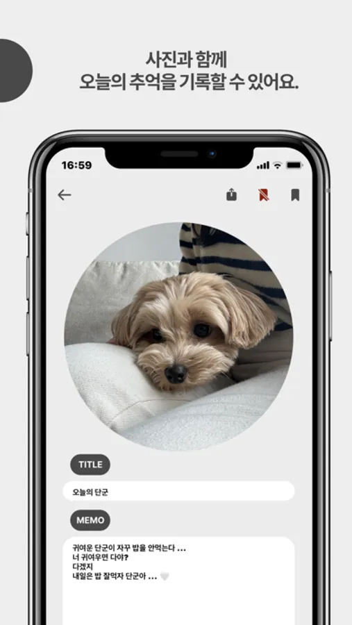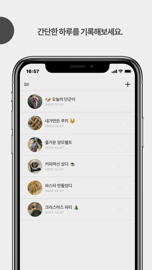 - 간단한 일기를 사진과 함께 저장할 수 있습니다.