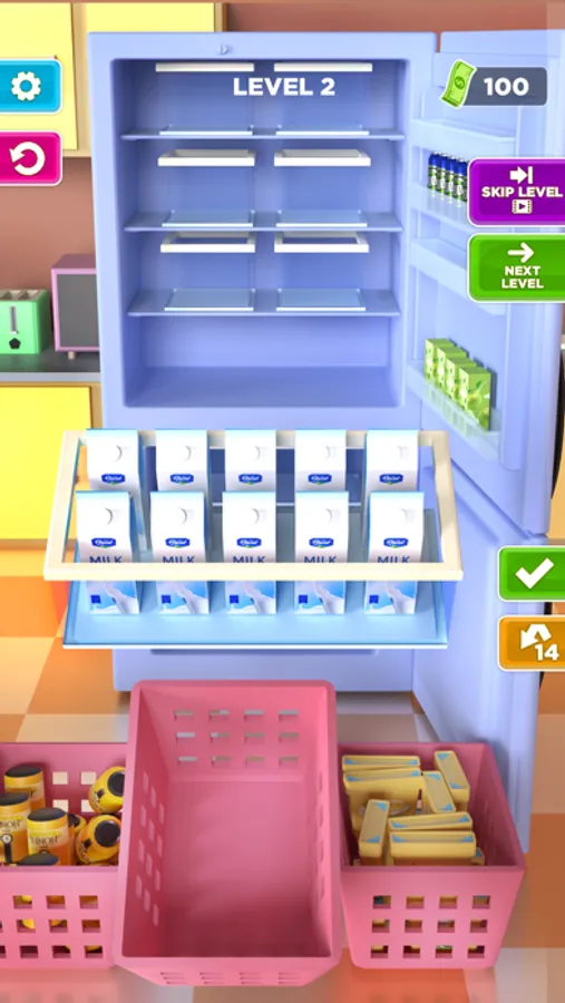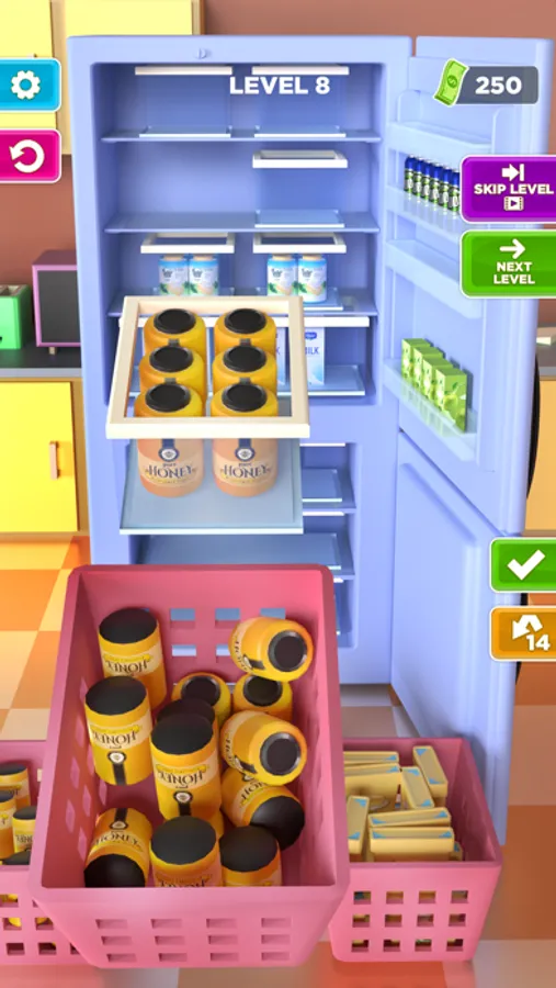 Fill the fridge 3D will tease and warm up your brain to solve the puzzles and problems. Organize your fridge with all the available items and fill the fridge storage.